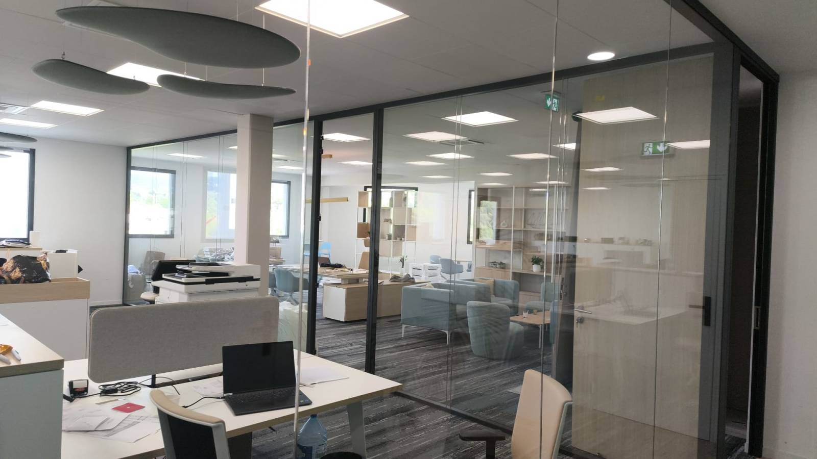 Pour offrir à ses clients des espaces de travail lumineux et modernes, Green House Menuiseries a réalisé la pose de cloisons vitrées sur mesure dans des bureaux à Marseille. Cette installation combine élégance, fonctionnalité et acoustique performante, tout en respectant les exigences architecturales du site.
