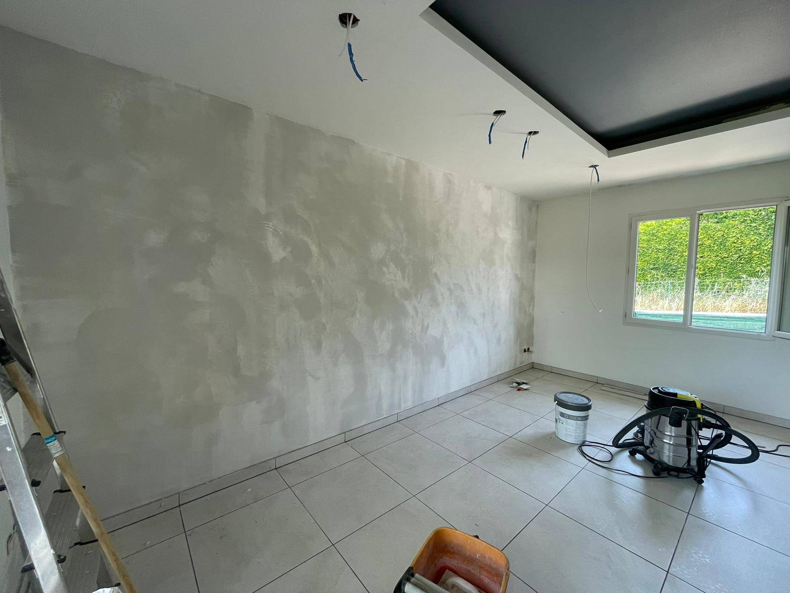 Moderniser un intérieur demande un savoir-faire précis et une exécution soignée. Les travaux présentés ici illustrent parfaitement l’expertise de Green House en matière de rénovation intérieure. À travers ces différentes étapes, on découvre une transformation progressive d’un séjour : préparation des murs, application d’enduits, mise en peinture et reprise des installations électriques.